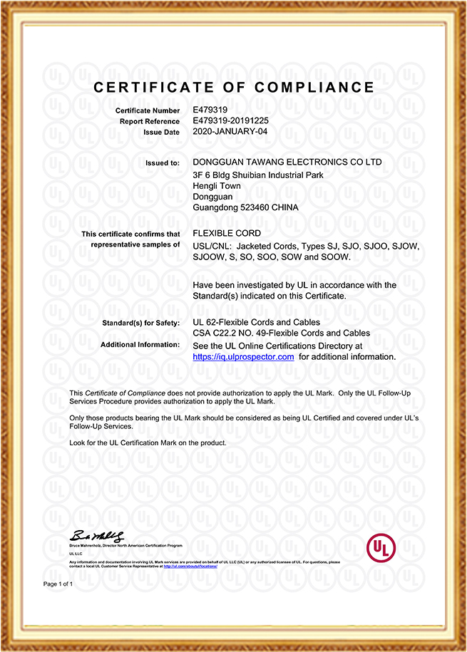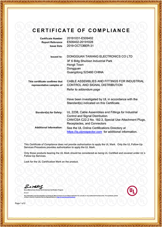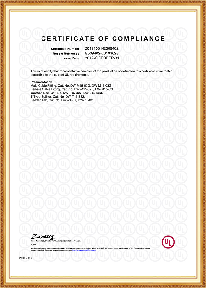 防水头UL--E509402-20191028-CertificateofCompliance--证书(0001)